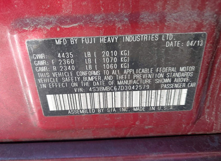 - VIN: 4S3BMBC67D3042579