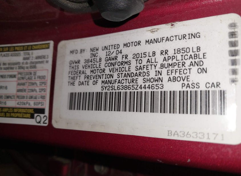 - VIN: 5Y2SL63865Z444653