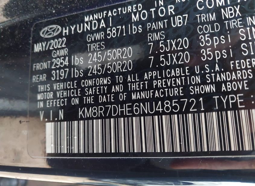 - VIN: KM8R7DHE6NU485721