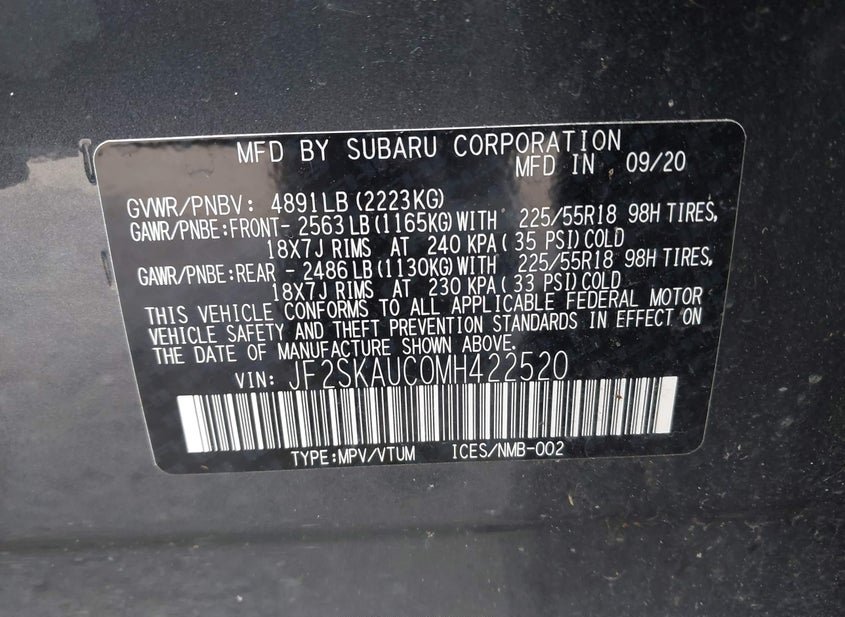 - VIN: JF2SKAUC0MH422520