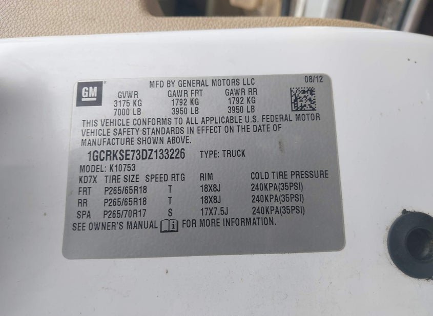 - VIN: 1GCRKSE73DZ133226