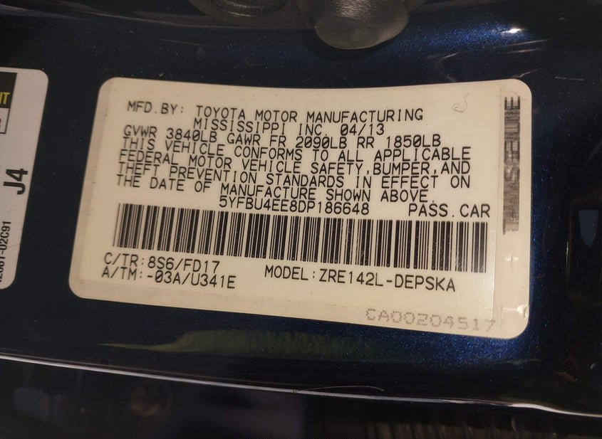 - VIN: 5YFBU4EE8DP186648