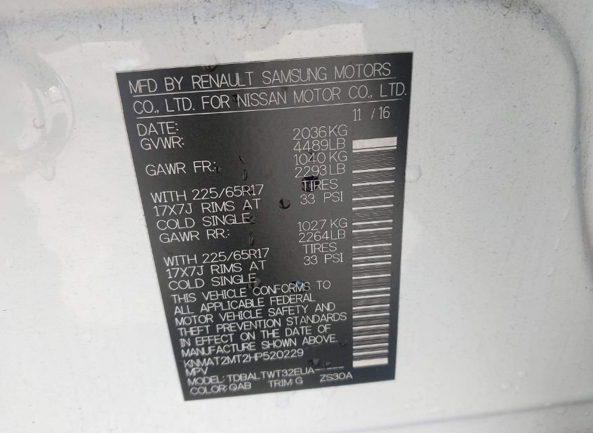 - VIN: KNMAT2MT2HP520229