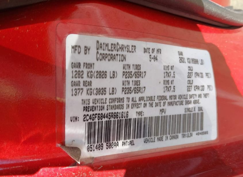 - VIN: 2C4GF68445R661616