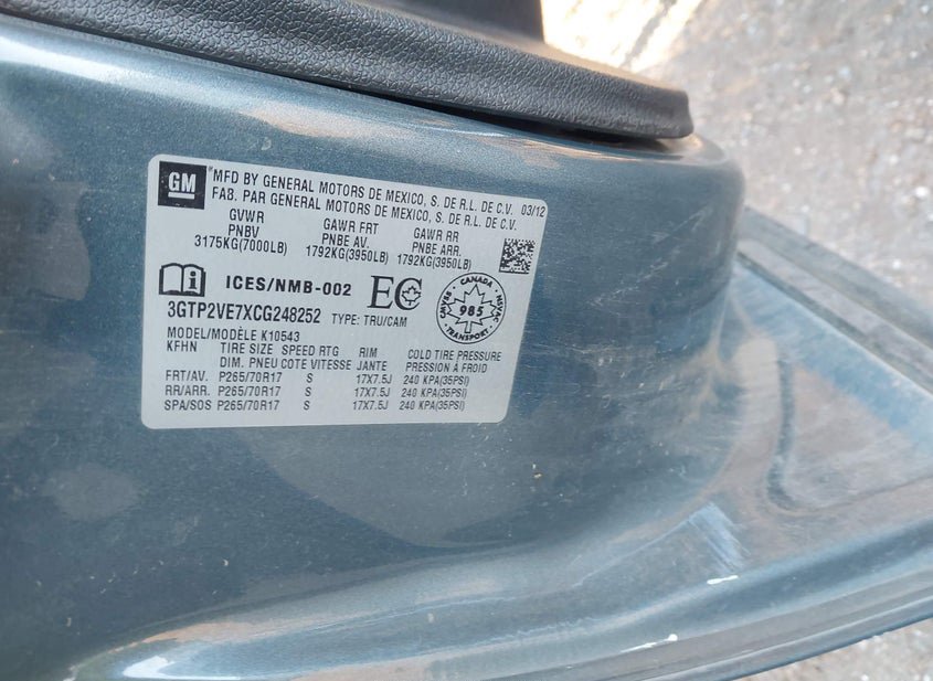 - VIN: 3GTP2VE7XCG248252