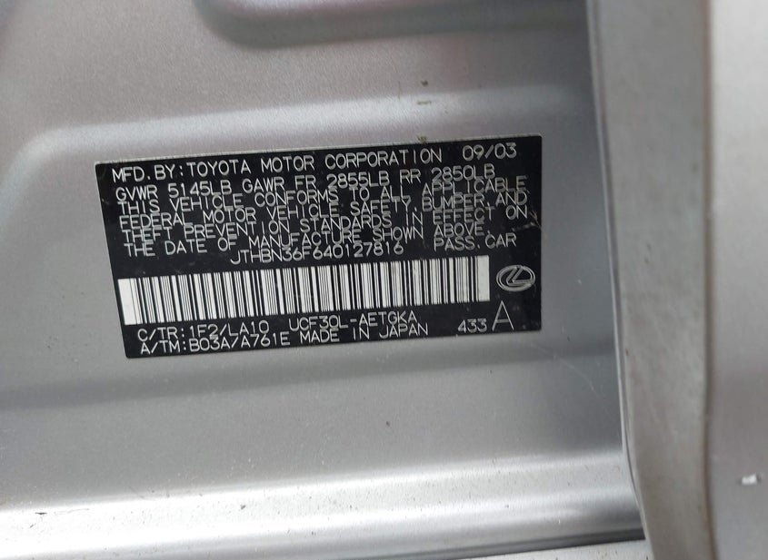 - Название лота: 2004 LEXUS LS 430