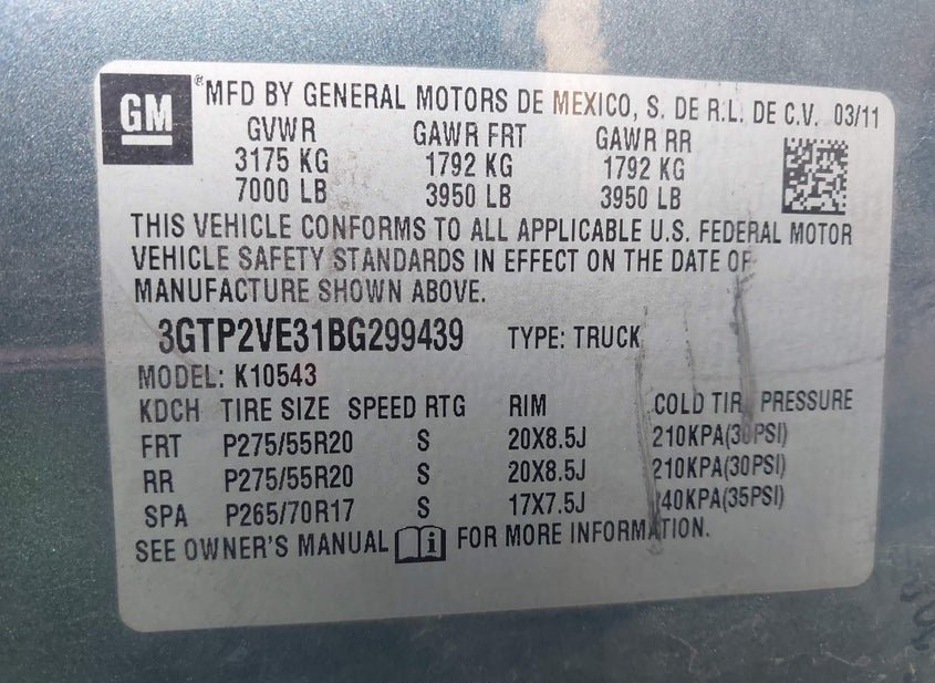 - VIN: 3GTP2VE31BG299439
