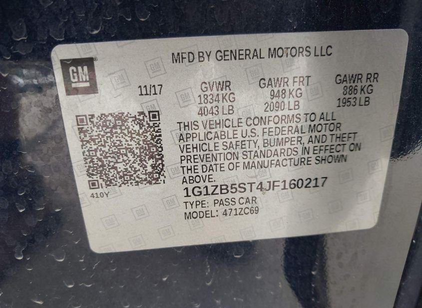 - VIN: 1G1ZB5ST4JF160217