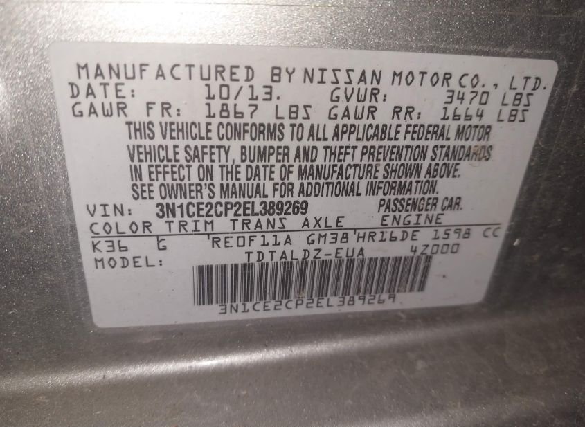 - VIN: 3N1CE2CP2EL389269