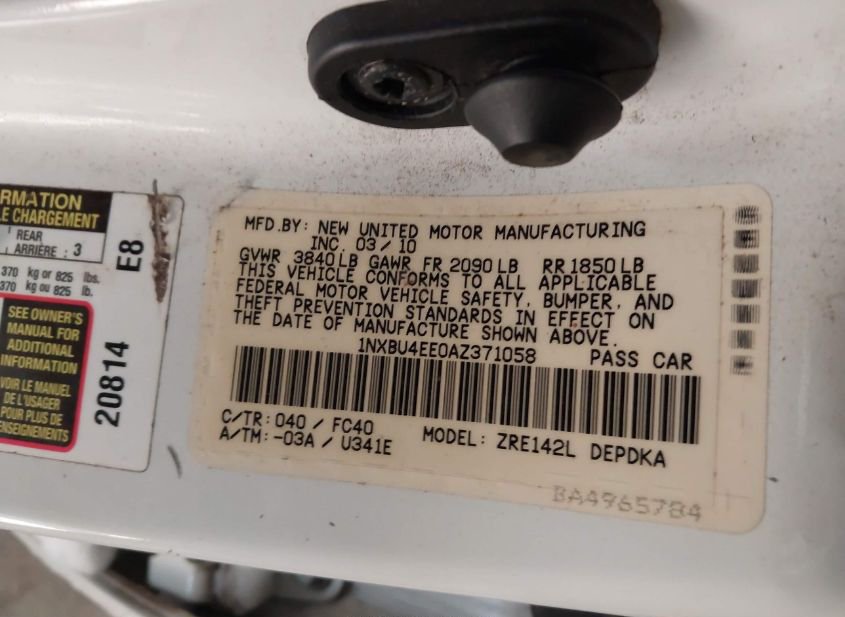 - VIN: 1NXBU4EE0AZ371058