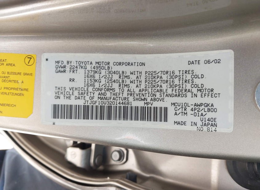 - VIN: JTJGF10U320144681