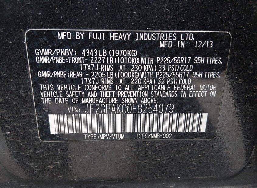 - VIN: JF2GPAKC0E8254079