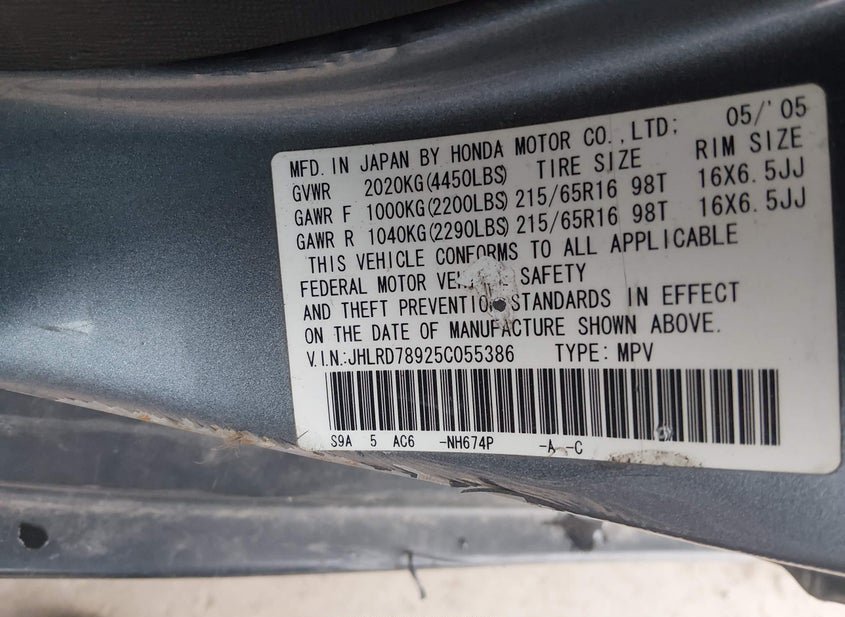 - VIN: JHLRD78925C055386