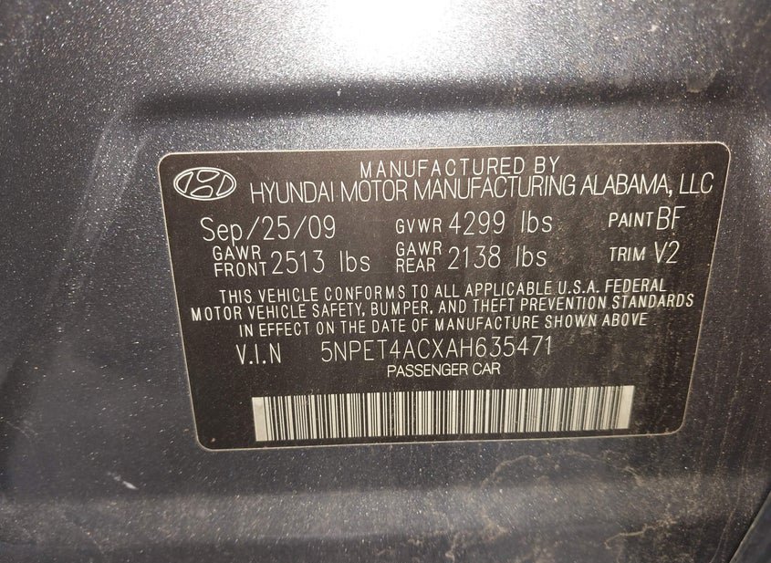 - VIN: 5NPET4ACXAH635471