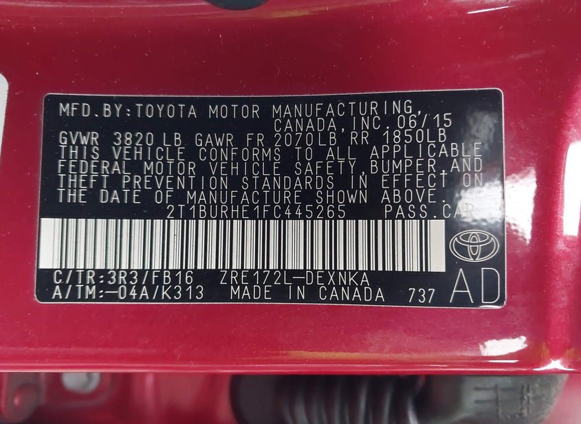 - VIN: 2T1BURHE1FC445265