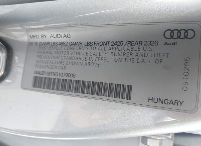 - VIN: WAUB1GFFXG1079009