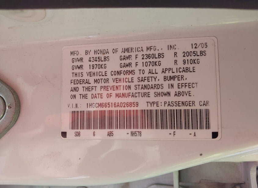 - VIN: 1HGCM66516A026859