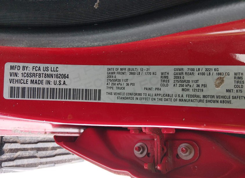 - VIN: 1C6SRFBT8NN162064