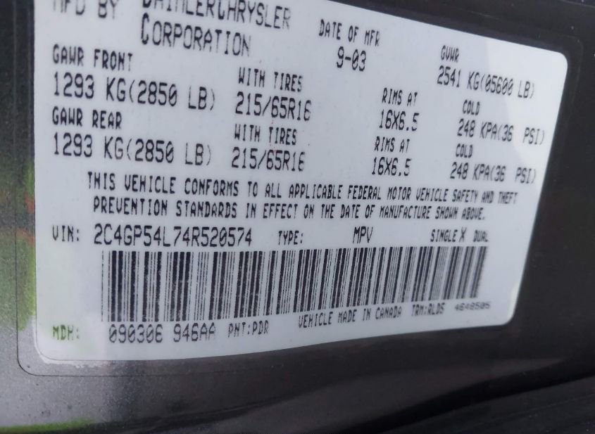 - VIN: 2C4GP54L74R520574