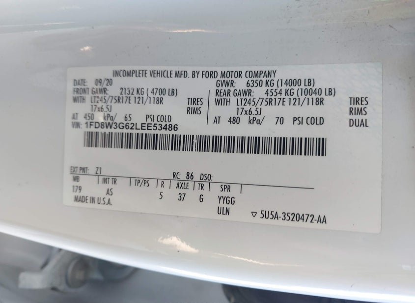 - VIN: 1FD8W3G62LEE53486