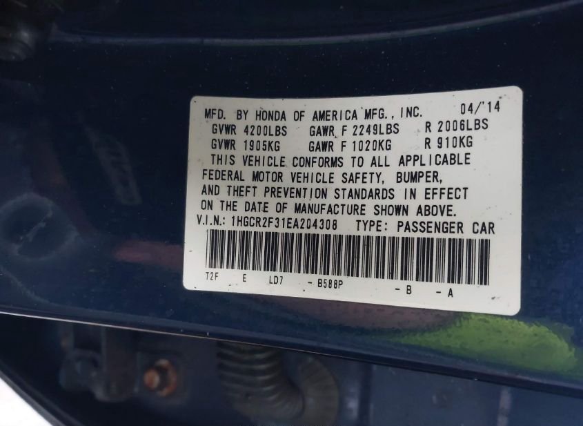 - VIN: 1HGCR2F31EA204308
