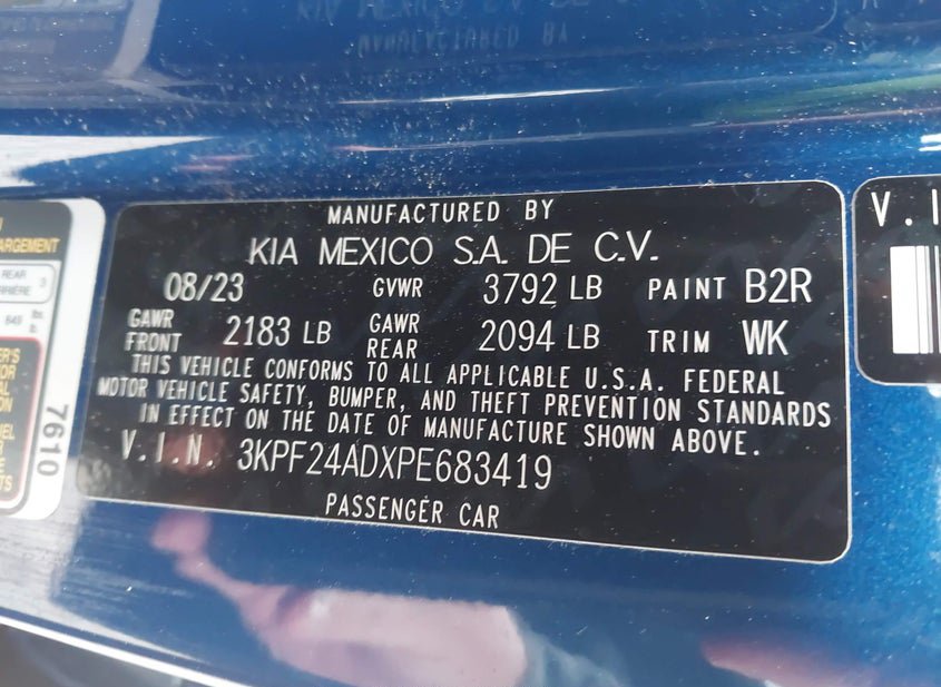 - VIN: 3KPF24ADXPE683419