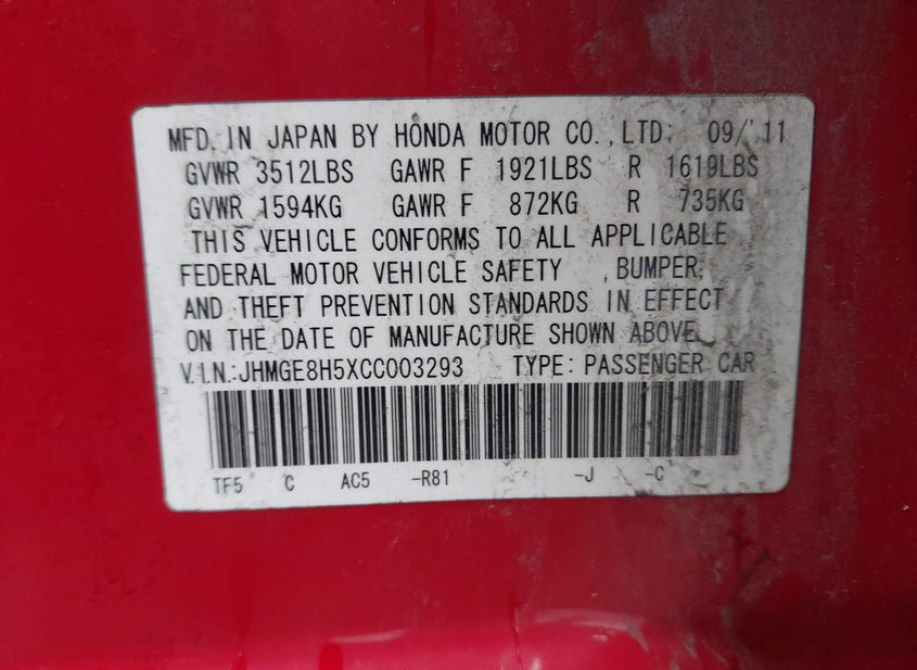 - VIN: JHMGE8H5XCC003293