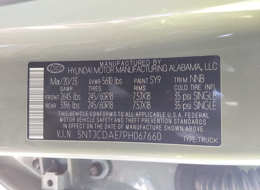 - VIN: 5NTJCDAE7PH067660