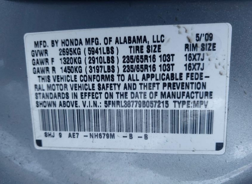 - VIN: 5FNRL38779B057215