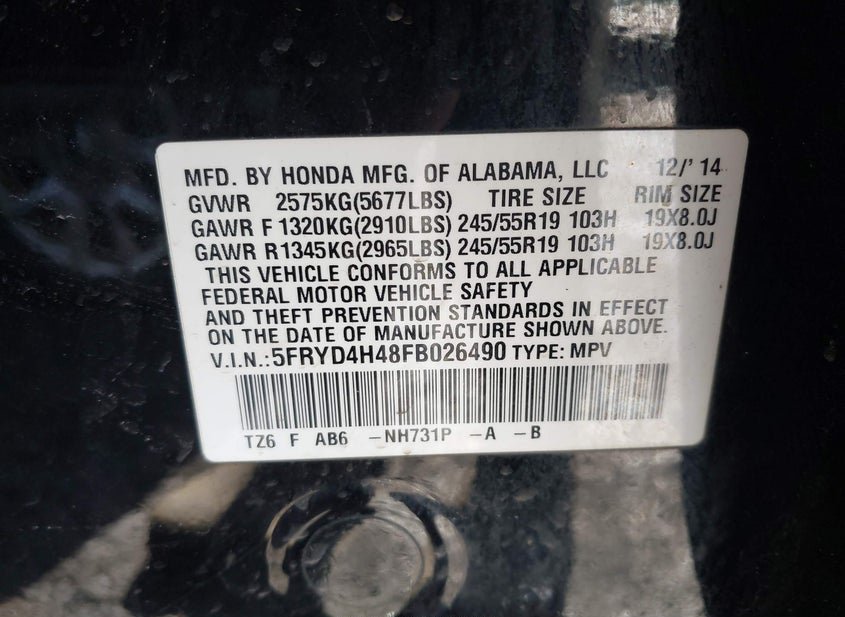 - VIN: 5FRYD4H48FB026490