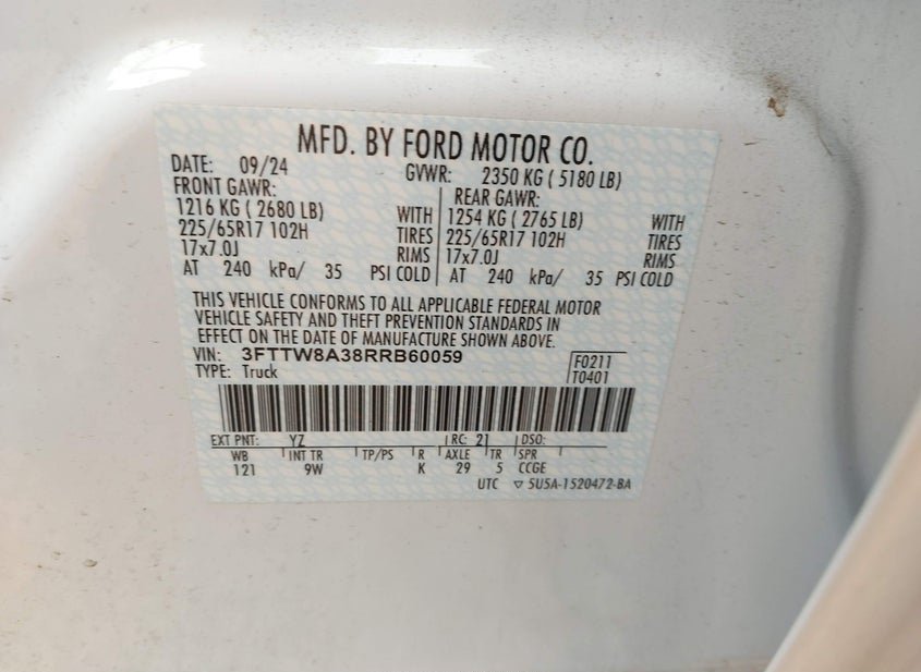 - VIN: 3FTTW8A38RRB60059
