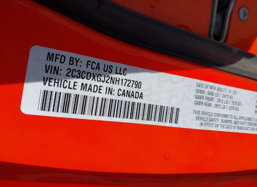- VIN: 2C3CDXGJ2NH172790