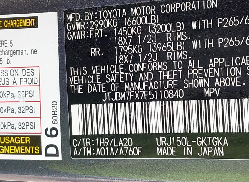 - VIN: JTJBM7FX7F5110840