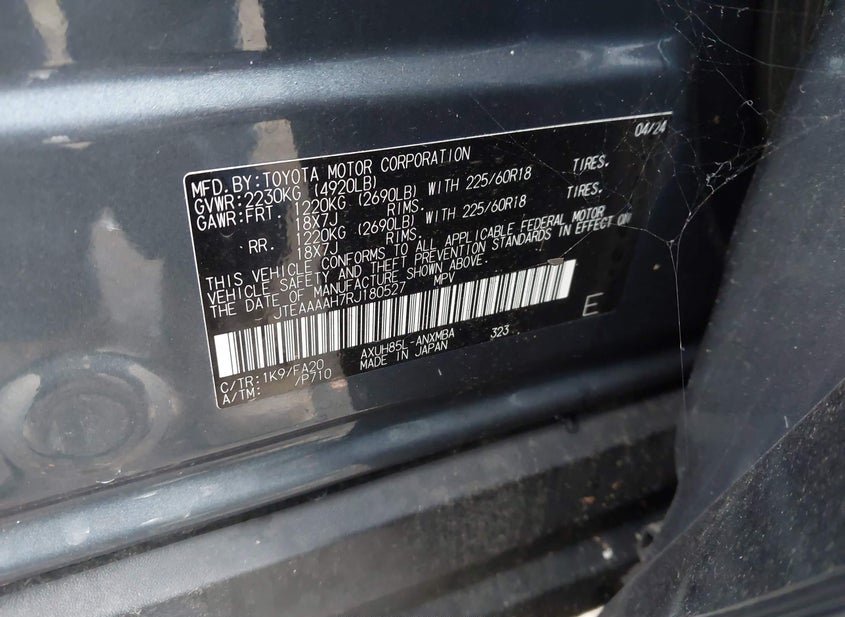 - VIN: JTEAAAAH7RJ180527