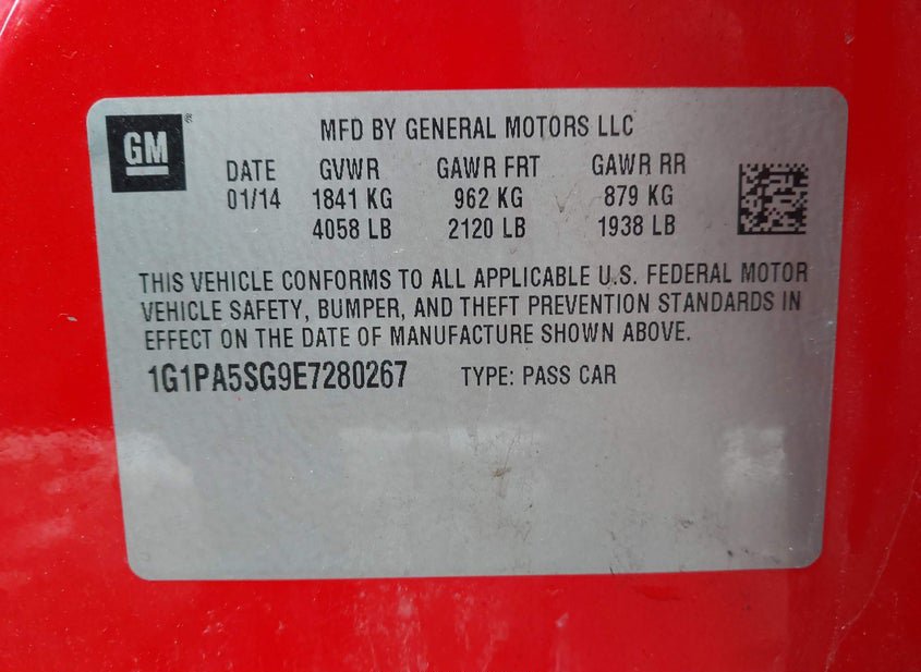 - VIN: 1G1PA5SG9E7280267