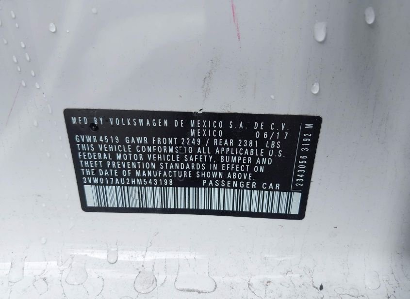 - VIN: 3VW017AU2HM543198