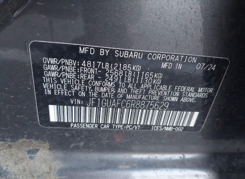 - VIN: JF1GUAFC6R8875629