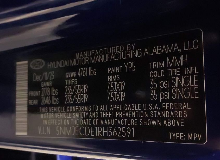- VIN: 5NMJECDE1RH362591