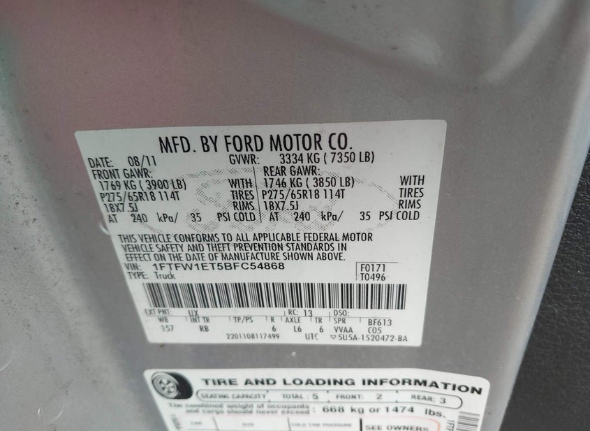- VIN: 1FTFW1ET5BFC54868