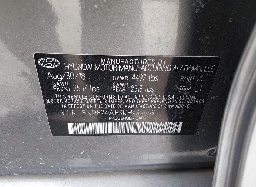 - VIN: 5NPE24AF3KH735569