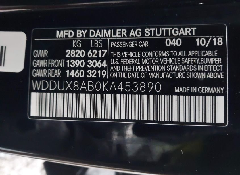 - VIN: WDDUX8AB0KA453890