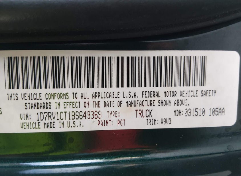 - VIN: 1D7RV1CT1BS649369