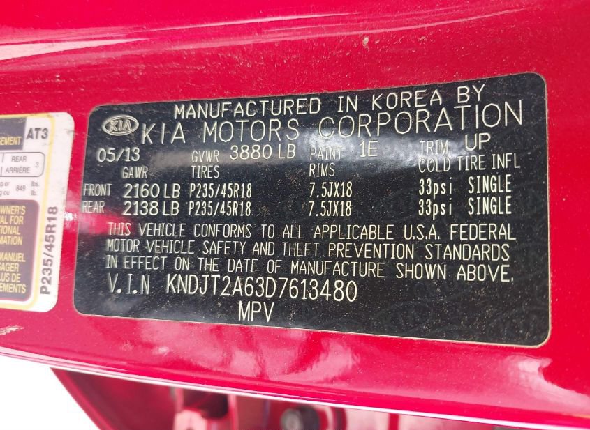 - VIN: KNDJT2A63D7613480