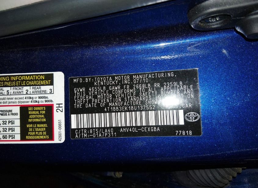 - VIN: 4T1BB3EK1BU137552