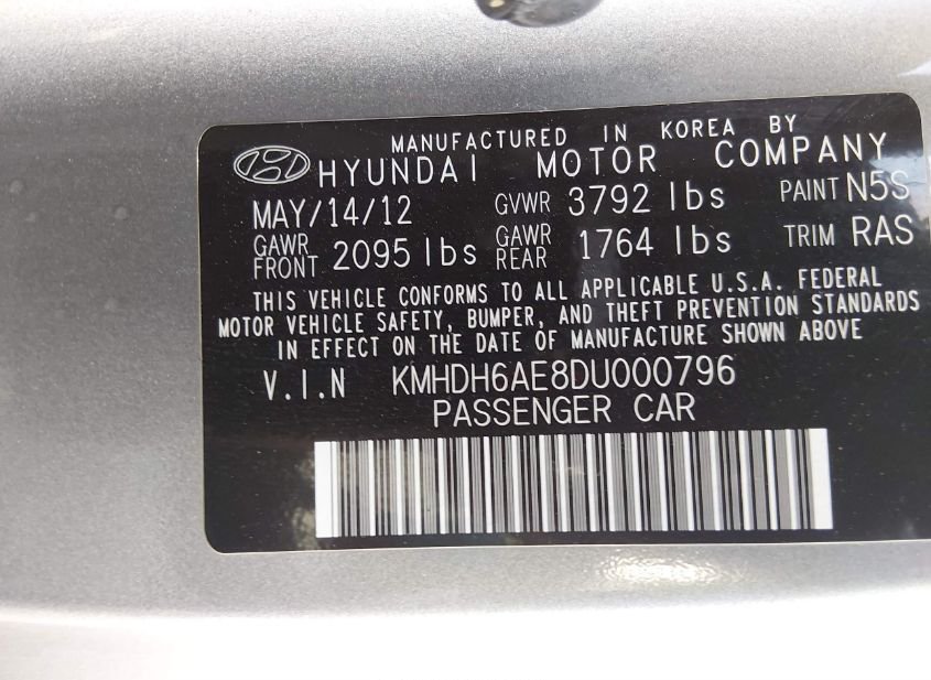 - VIN: KMHDH6AE8DU000796