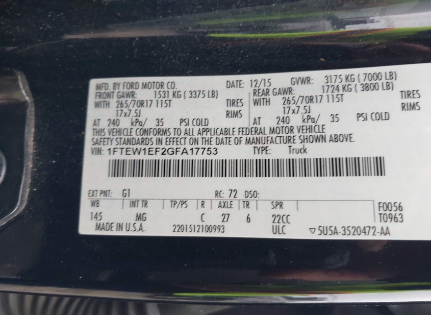 - VIN: 1FTEW1EF2GFA17753