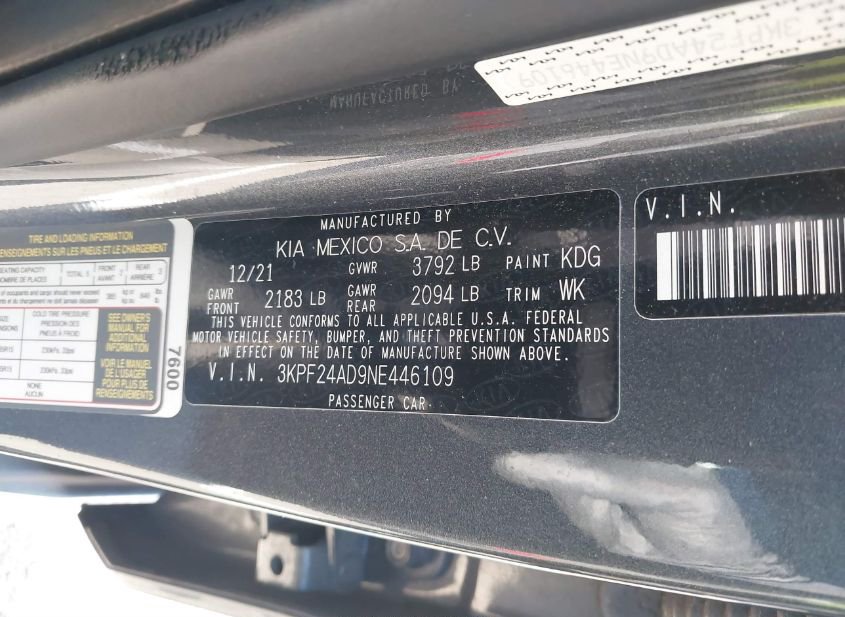 - VIN: 3KPF24AD9NE446109