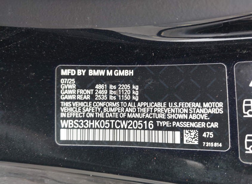 - VIN: WBS33HK05TCW20516
