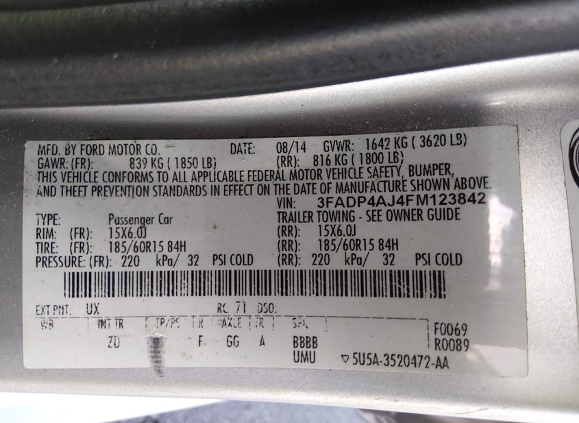 - VIN: 3FADP4AJ4FM123842