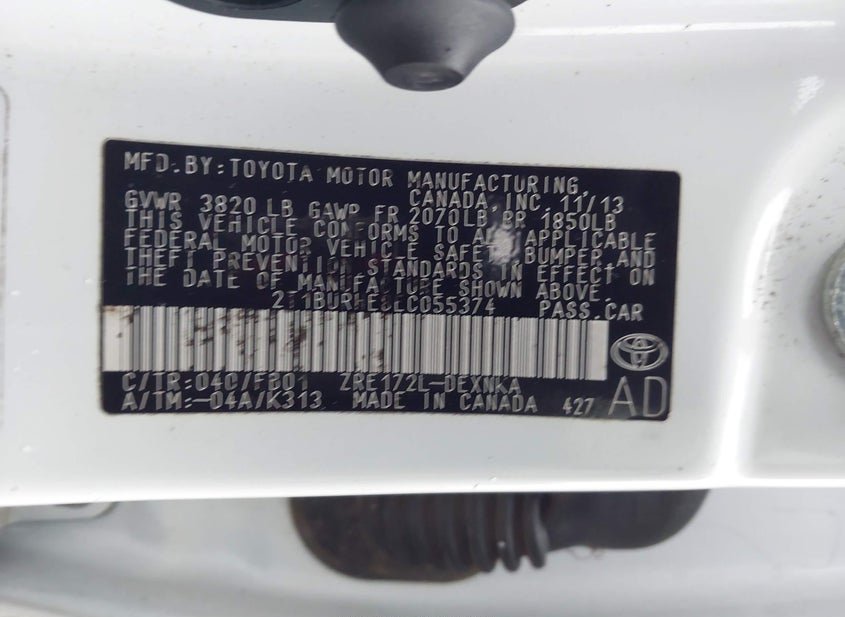 - VIN: 2T1BURHE8EC055374